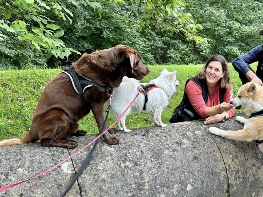 Gemeinsam mit anderen Mensch-Hund-Teams sind wir unterwegs und lernen Spaziergänge entspannt zu meistern trotz weiteren Vierbeinern und verschiedenen Reizen.