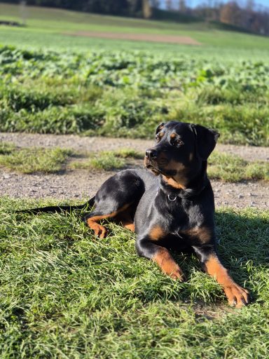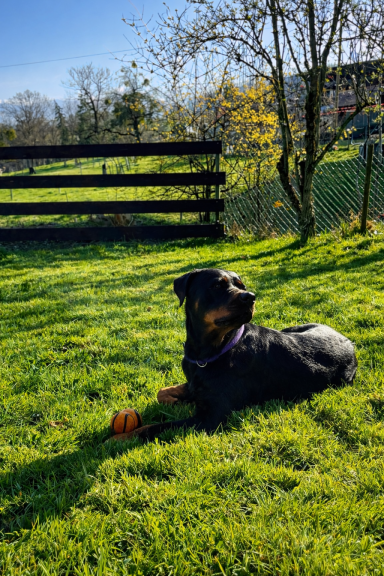 2024 ist Bayra als Welpe bei mir eingezogen. Sie ist eine Rottweiler Hündin und vom Temperament her ganz anders als Yuri. Ihr grösstes Talent ist Wachsamkeit - sie ist mein Sheriff auf vier Beinen.